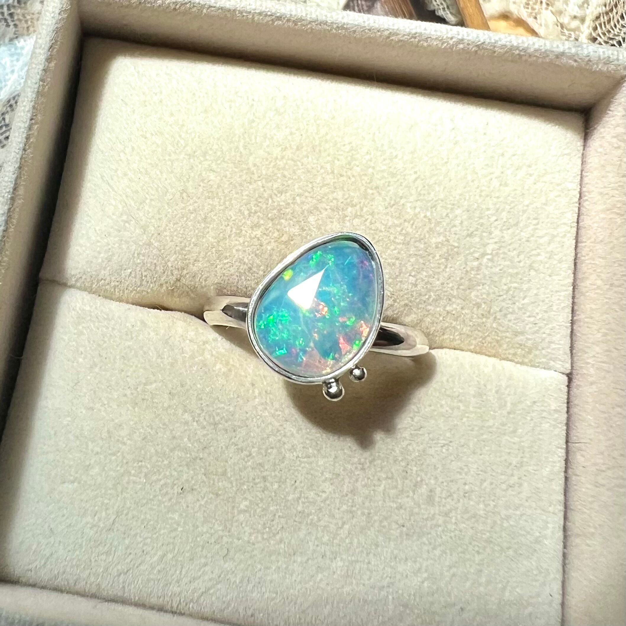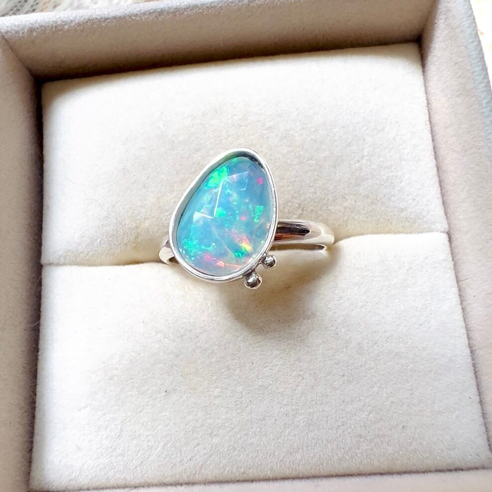 揺れる水面のようなキラキラ感と、虹のような遊色が可愛いオパールです。