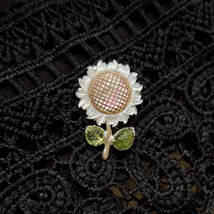 白蝶貝のひまわりと、きみどり、緑のトルマリン。