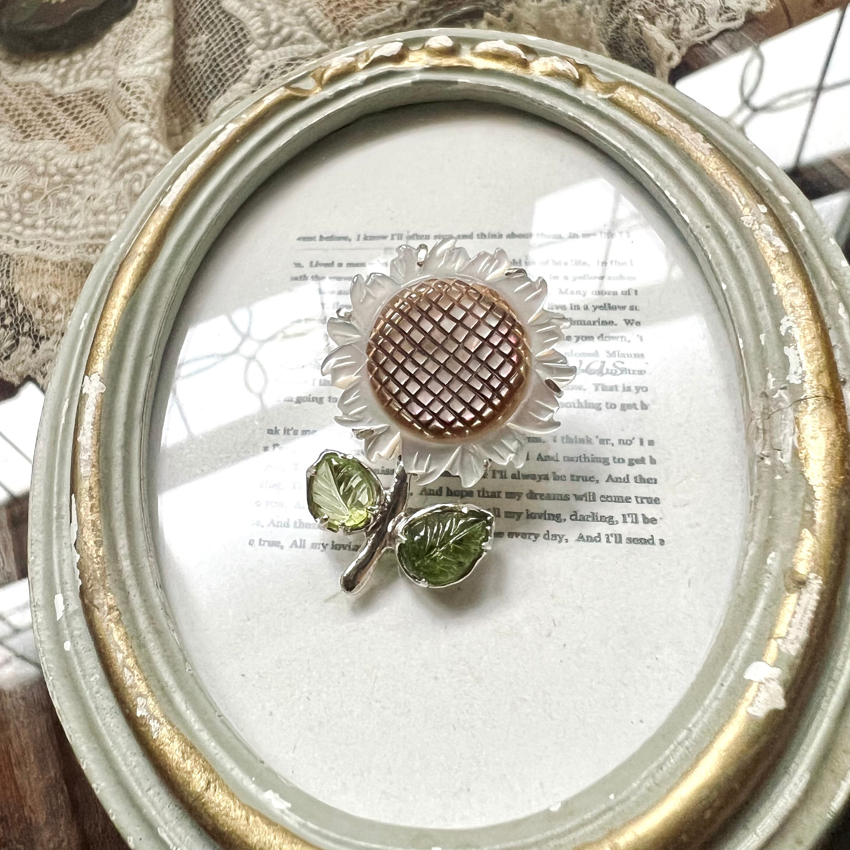 ひまわりと葉っぱのカービングルースを可愛く並べて、ひまわりのブローチに仕立てました。