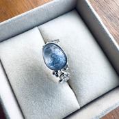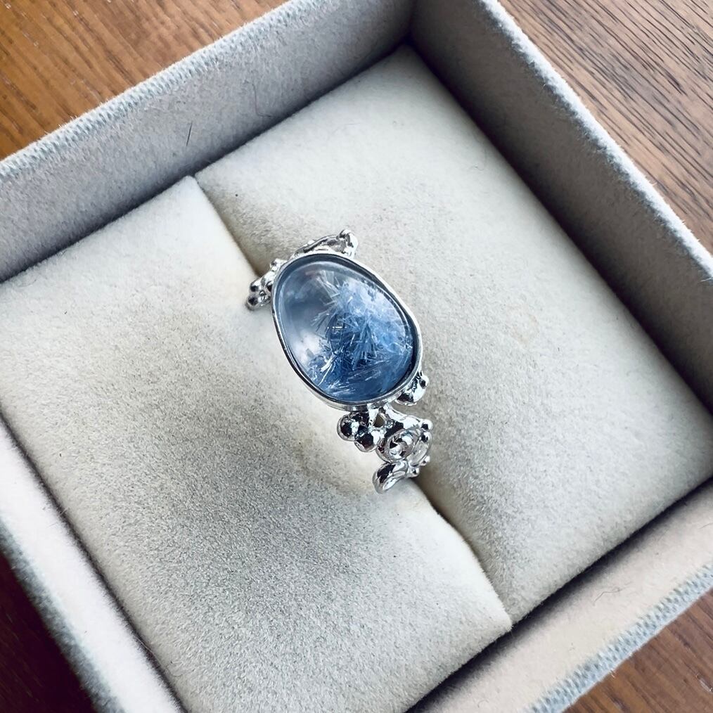 美しく青い星が瞬くデュモルチェライトインクォーツのリングです。