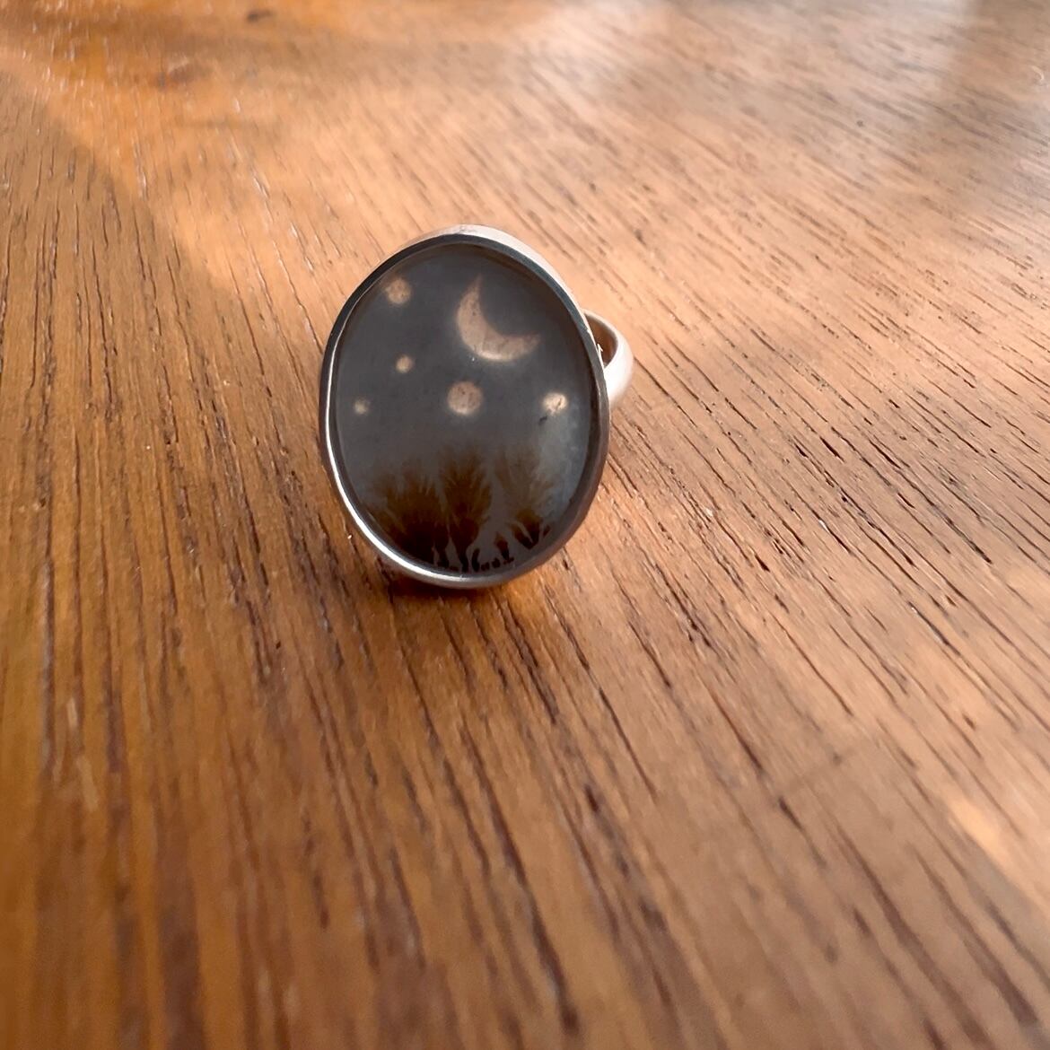 月と星々の優しい灯りに木々のシルエットが浮かびます。