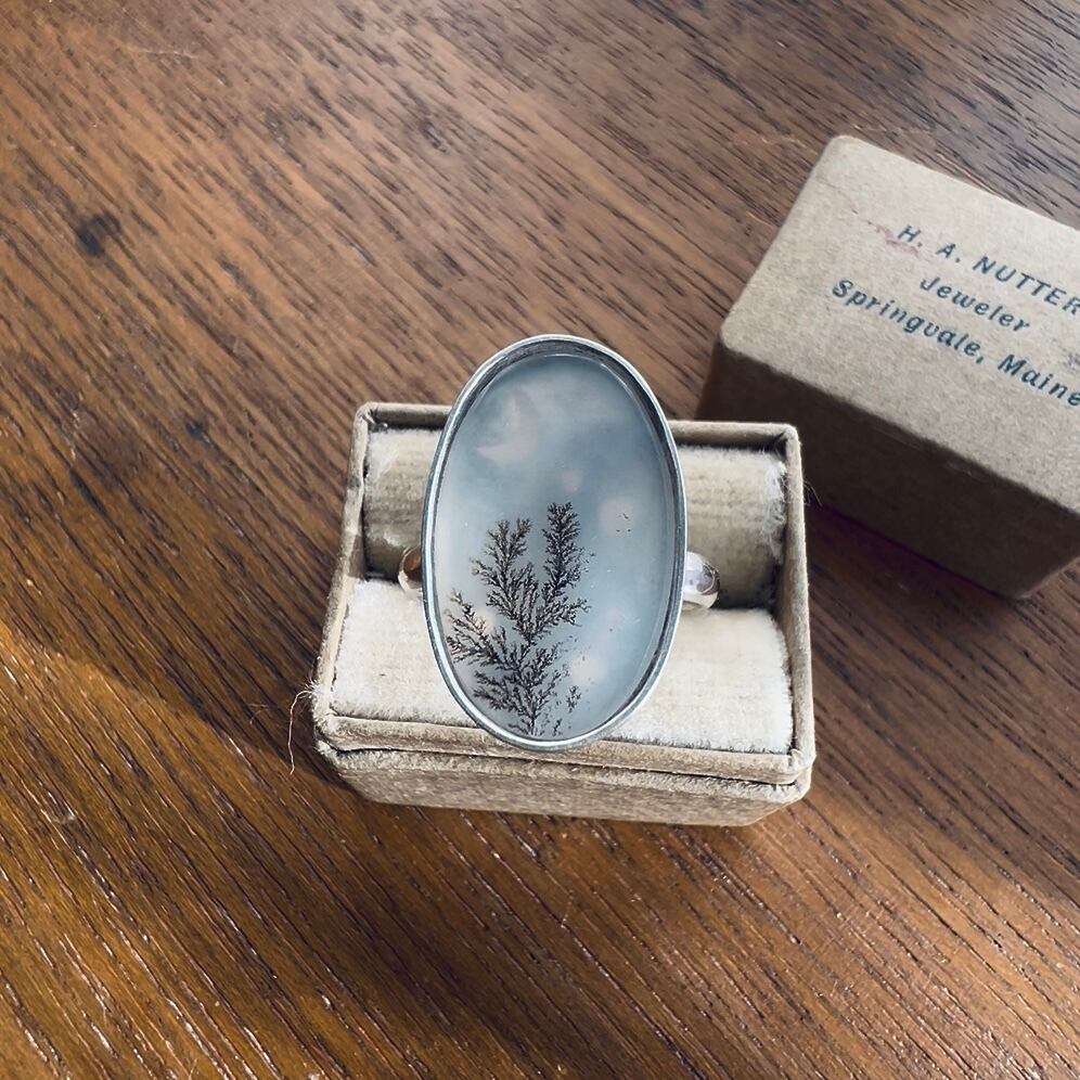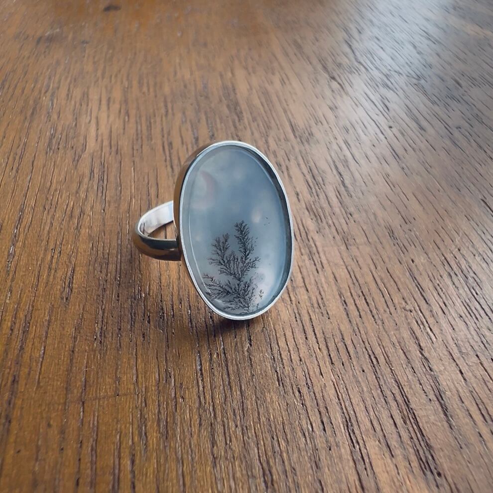 スライス状のデンドリティックアゲートを影絵風のリングに仕立てました。