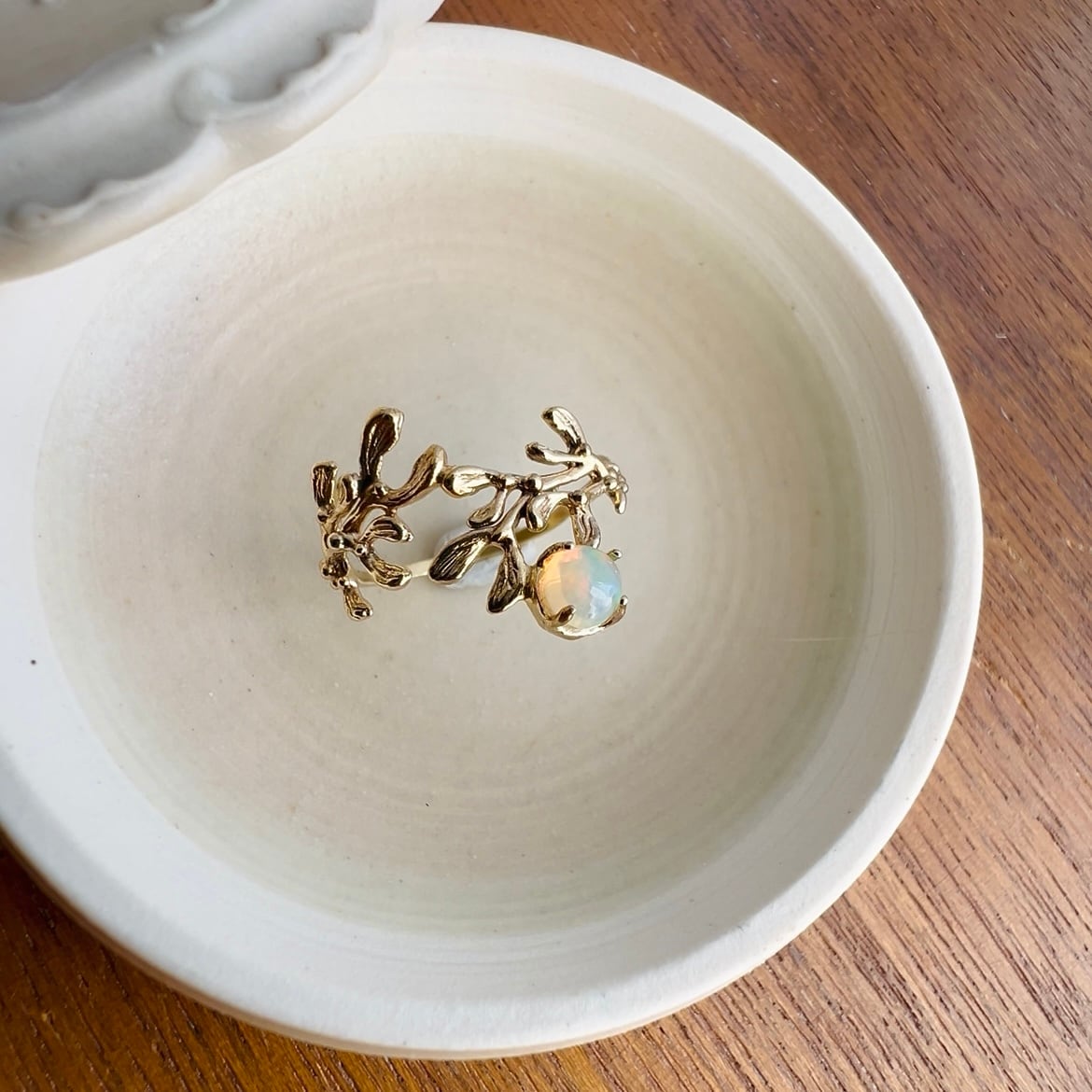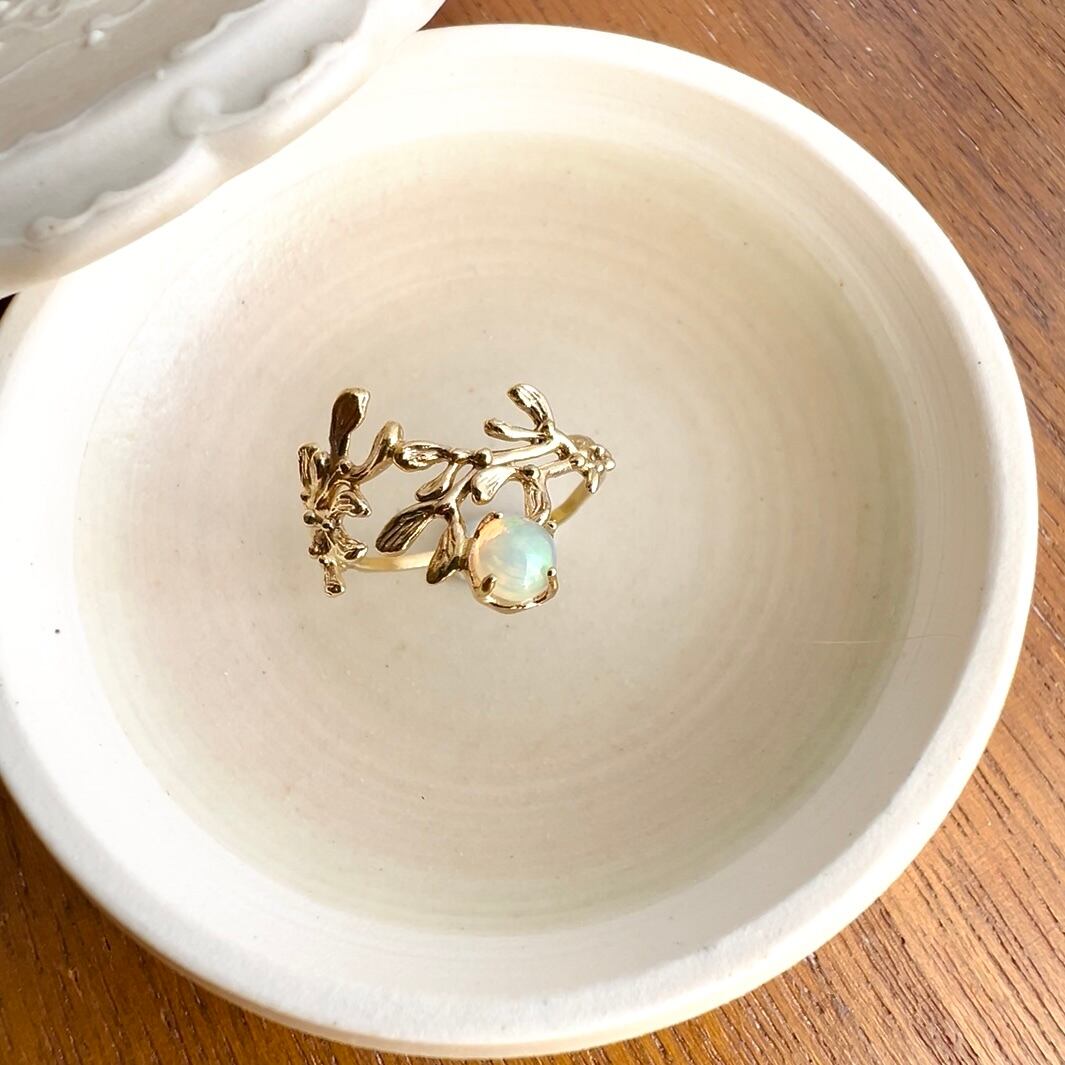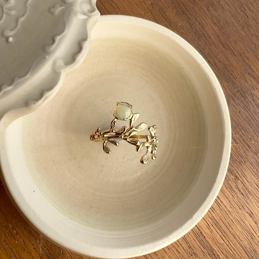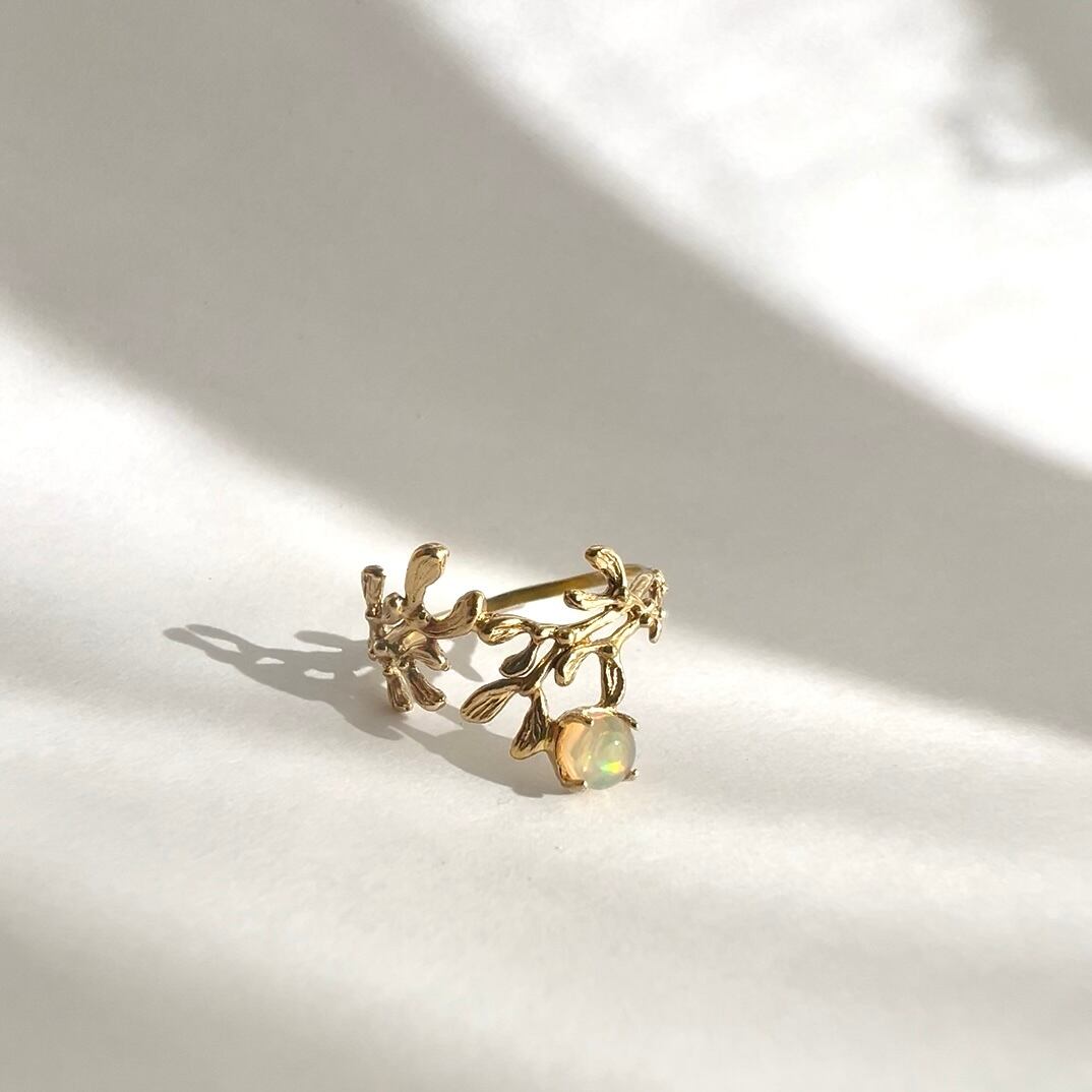 ヤドリギをモチーフにしたリングに、オパールの可愛い実を添えました。