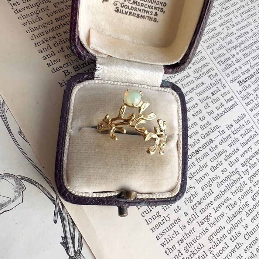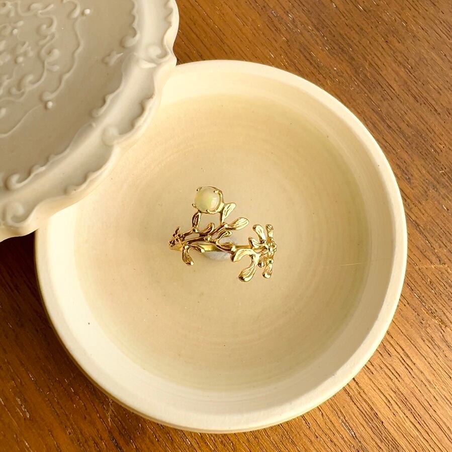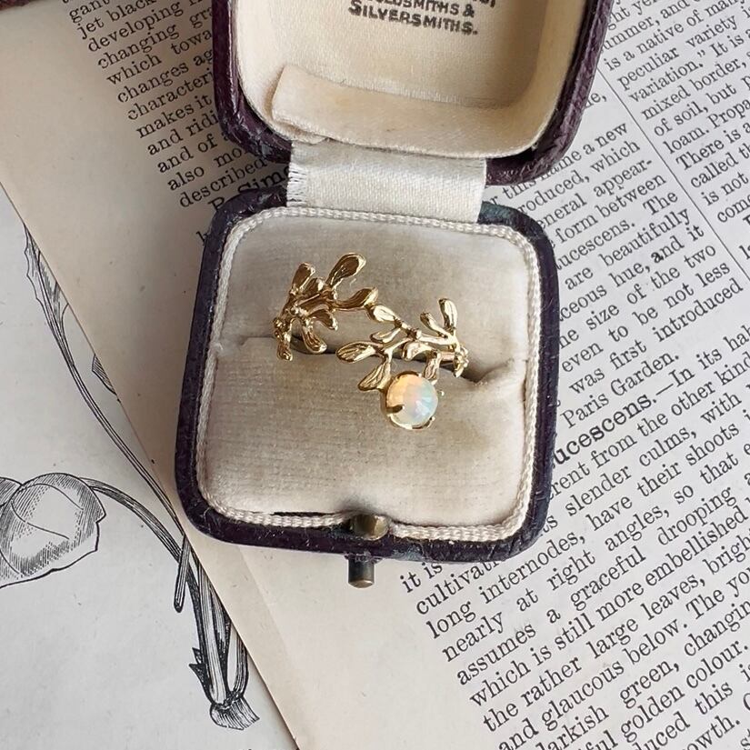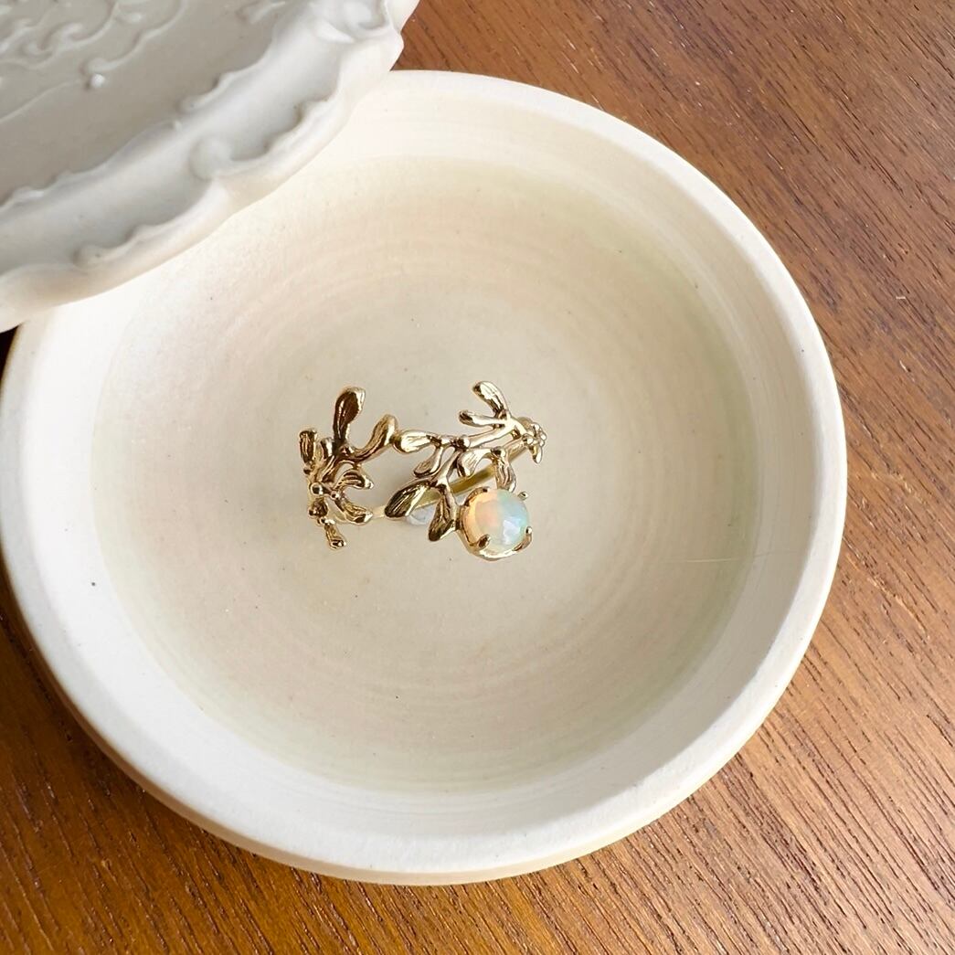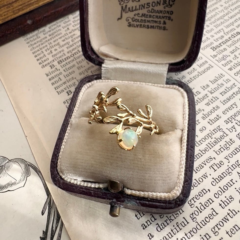 ヤドリギをモチーフにしたリングに、オパールの可愛い実を添えました。