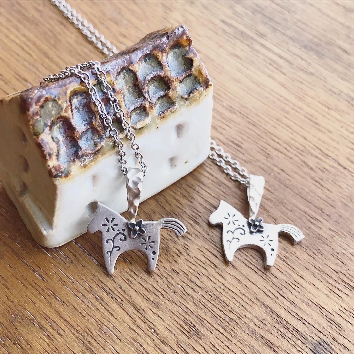 幸せを呼ぶ馬 といわれる北欧のダーラナホースをモチーフにしたネックレス。