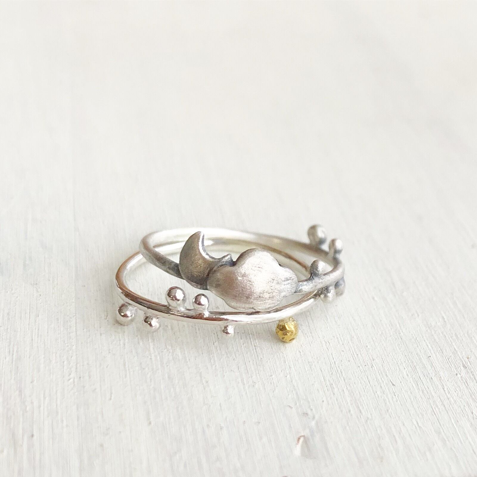 月と雲のリングは白っぽくマットな梨地仕上げと、少し燻しを施し古びたラフな風合いの仕上げになっています。