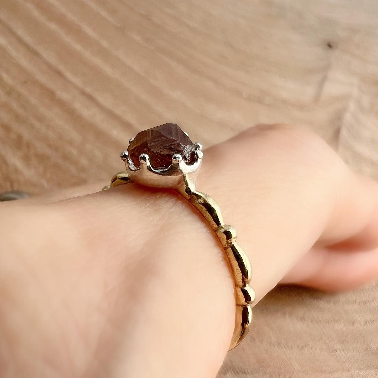 ブランデー色のスペサルティンガーネットの原石をリングに仕立てました。
