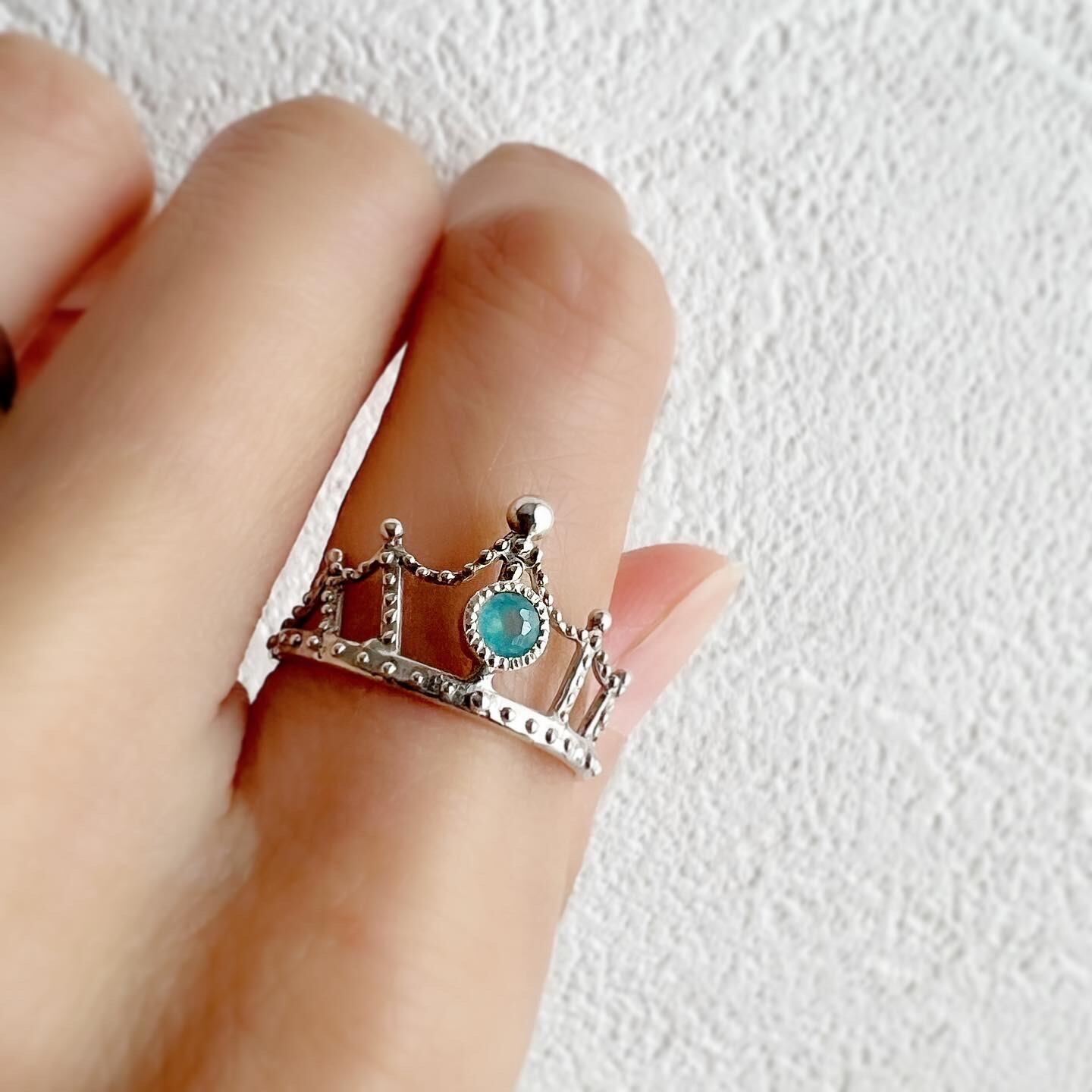 パライバブルー、海のような美しさのシーブルーカルセドニーをティアラ風のリングに仕立てました。