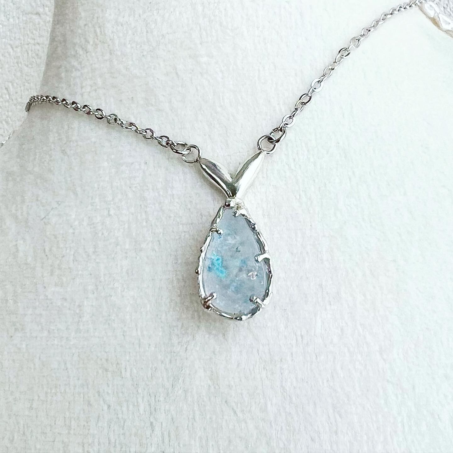小さな雨粒のような青い水玉が可愛いパライバクォーツ。