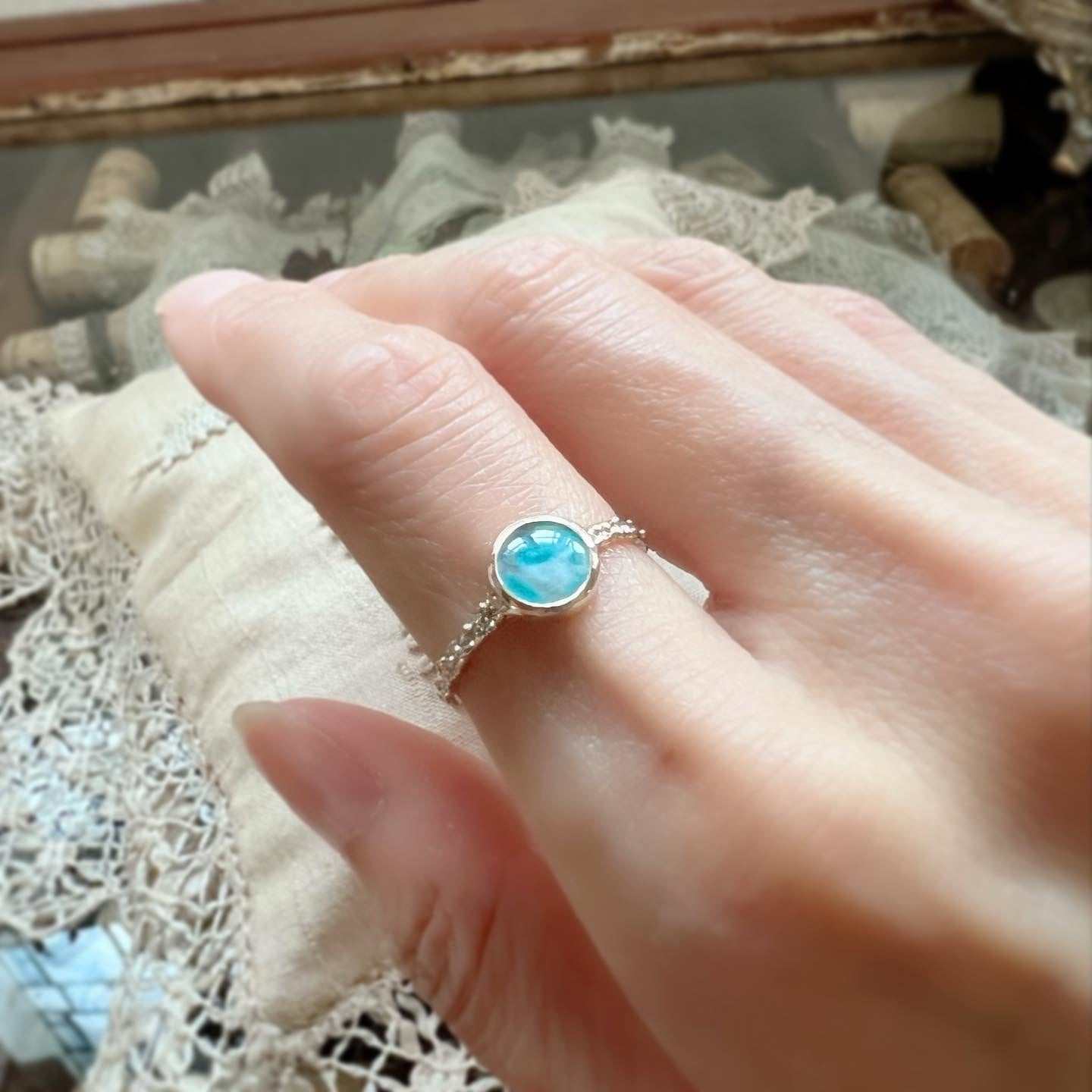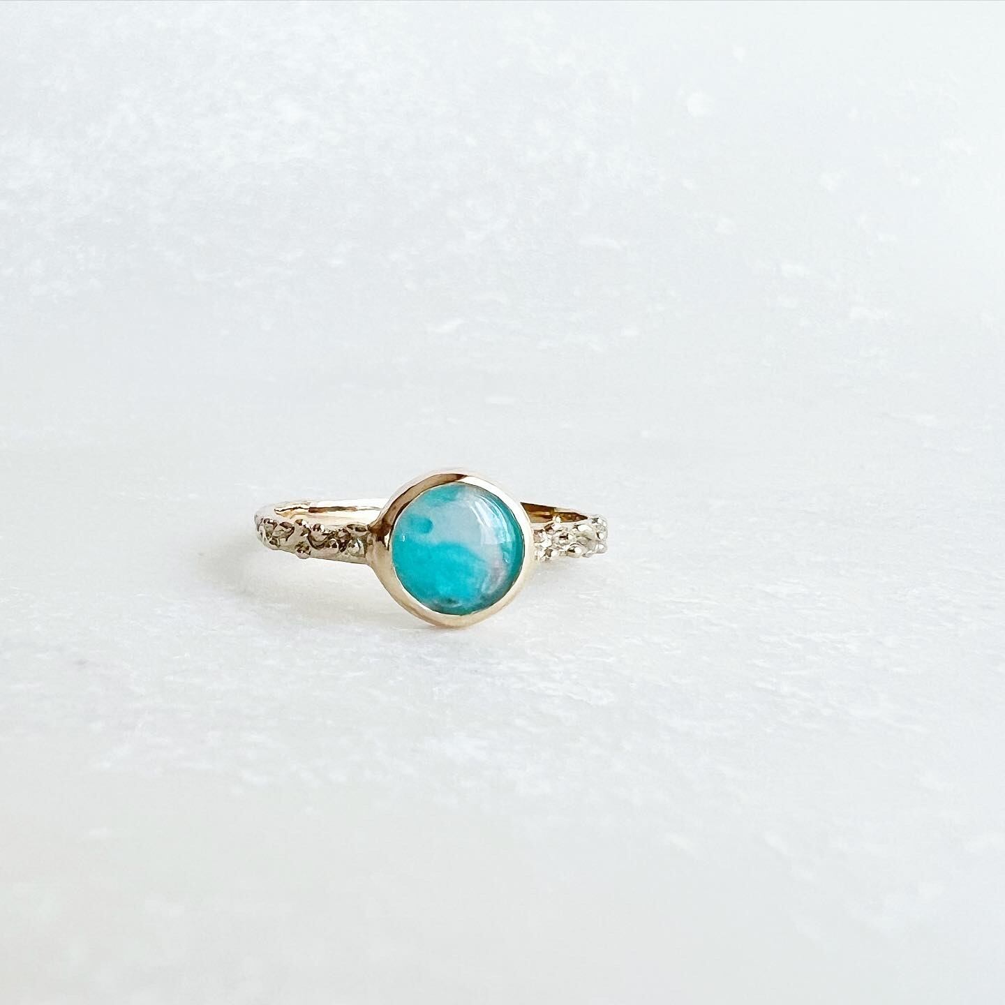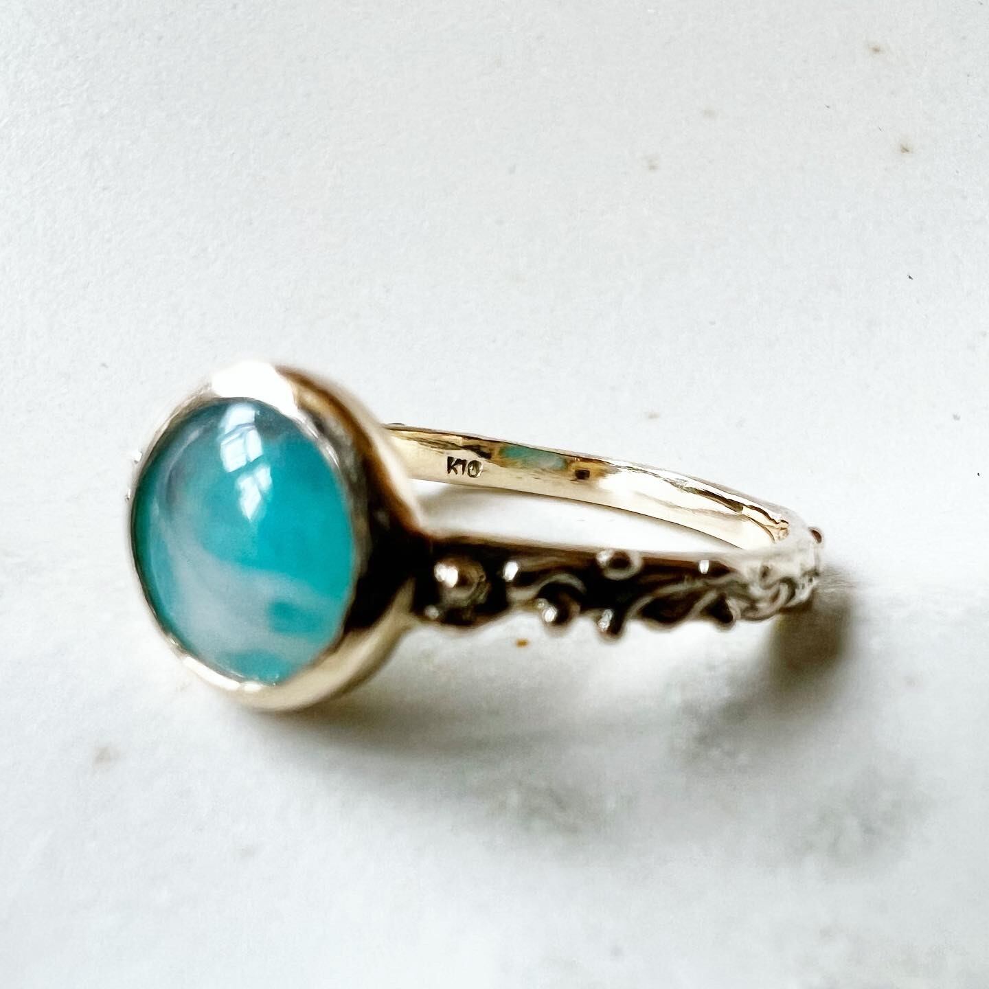 薄いラウンドカボションルースをリングにしました。10金製。