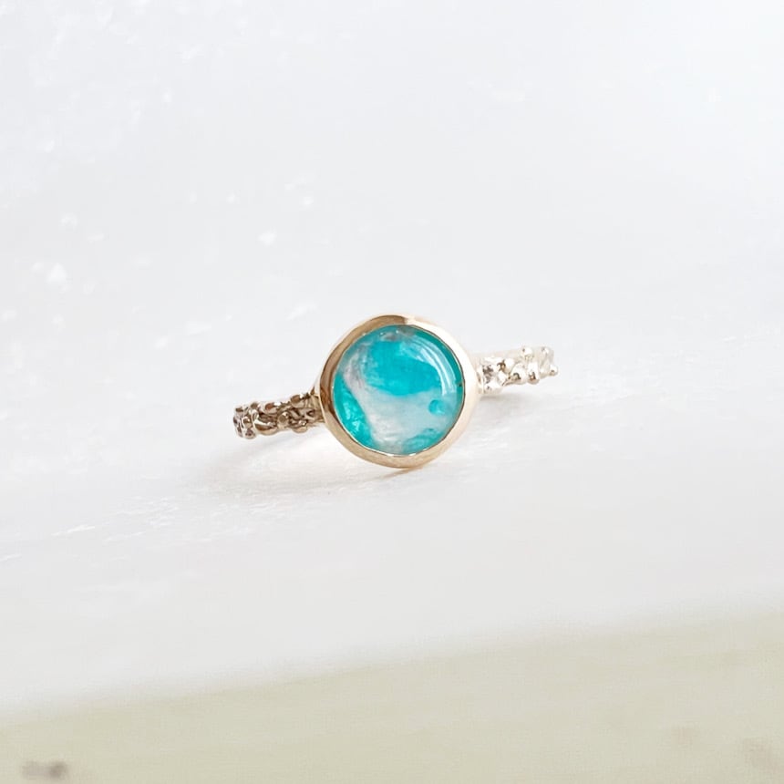 リングには光が細かく反射してキラキラと見えるような装飾を入れました。