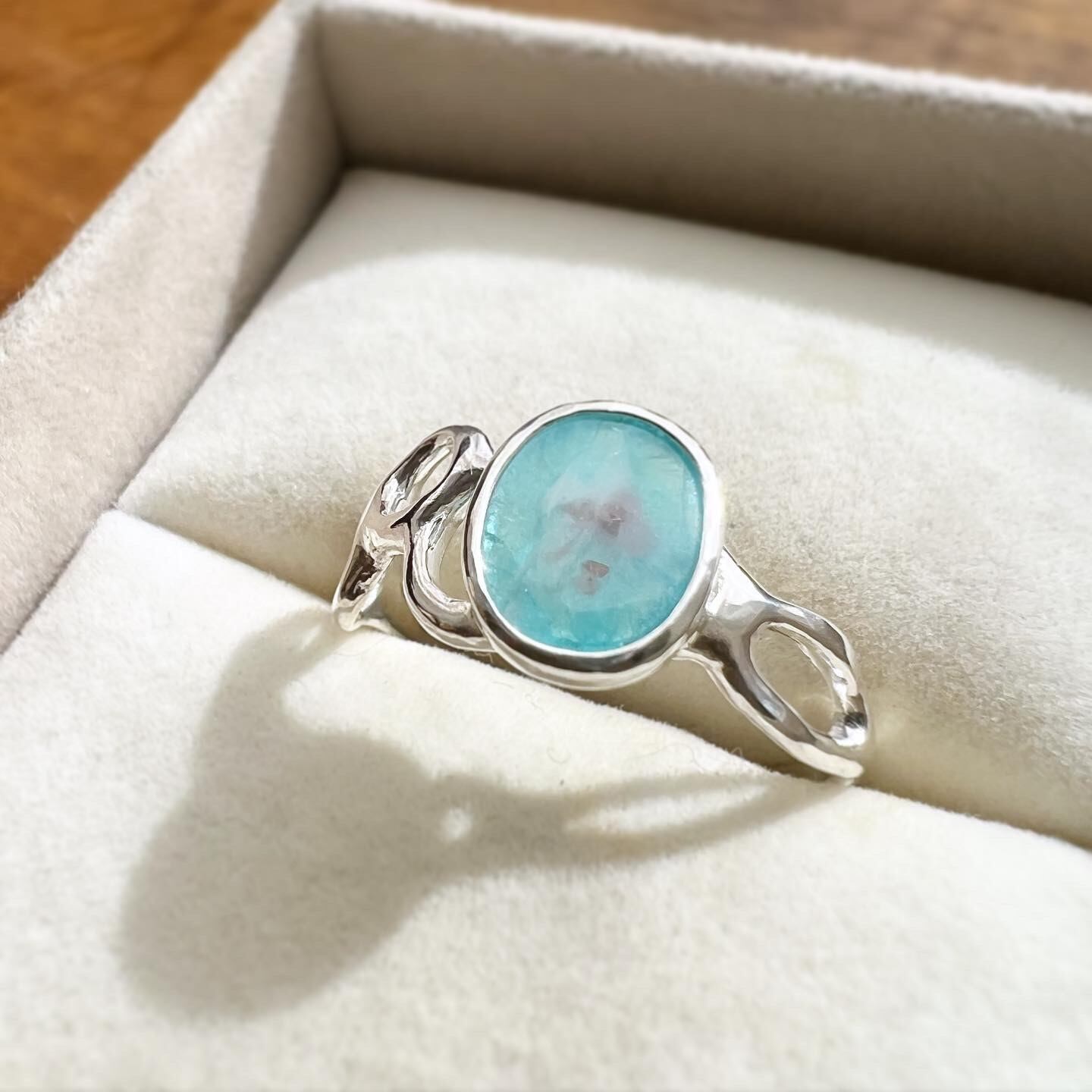 薄いカボションルースをリングにしました。