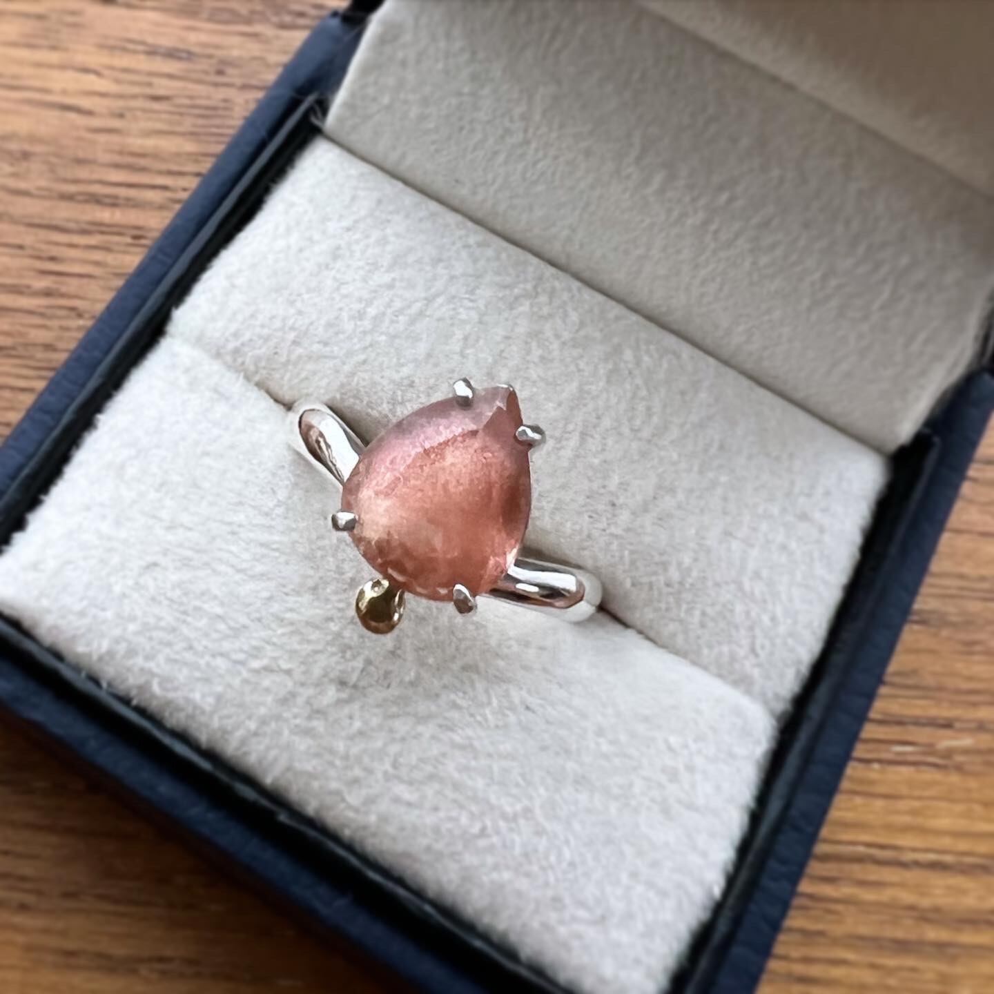 雫型のルースが、可愛く膨らむ桜の蕾か花びらのように見えました。